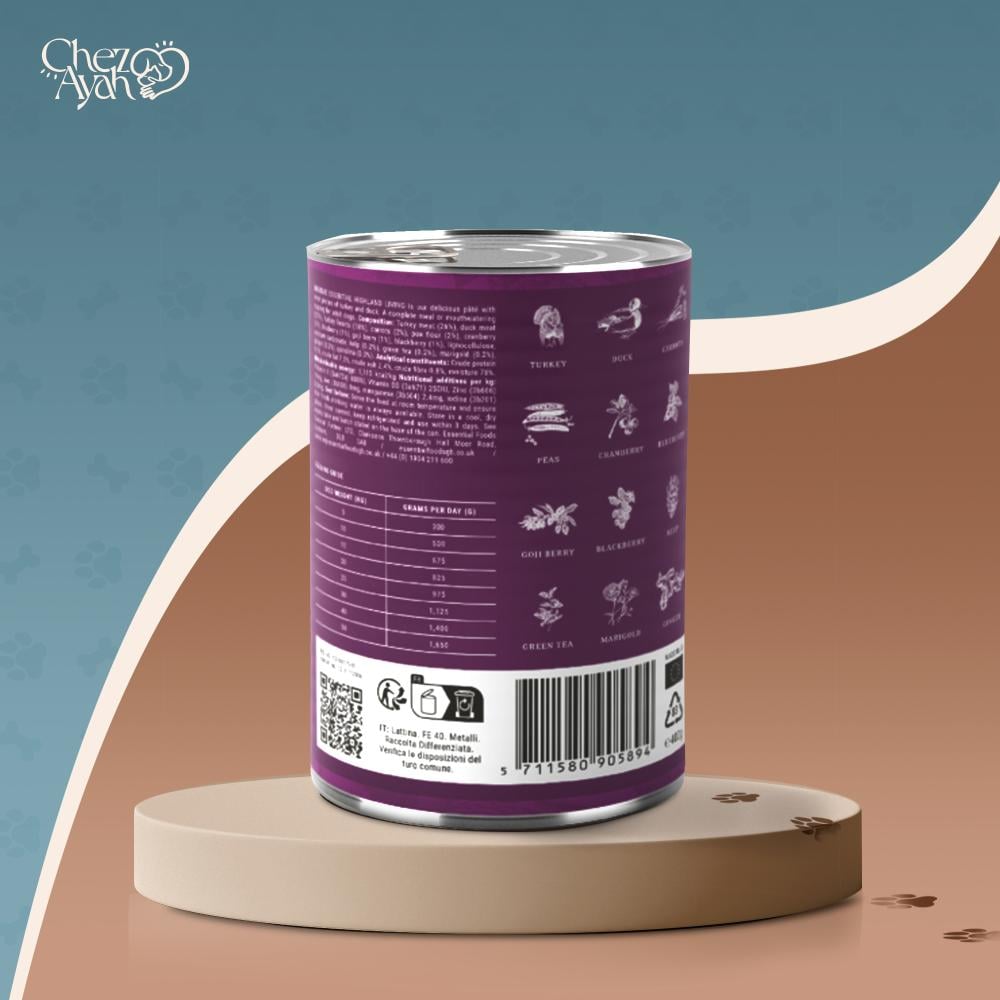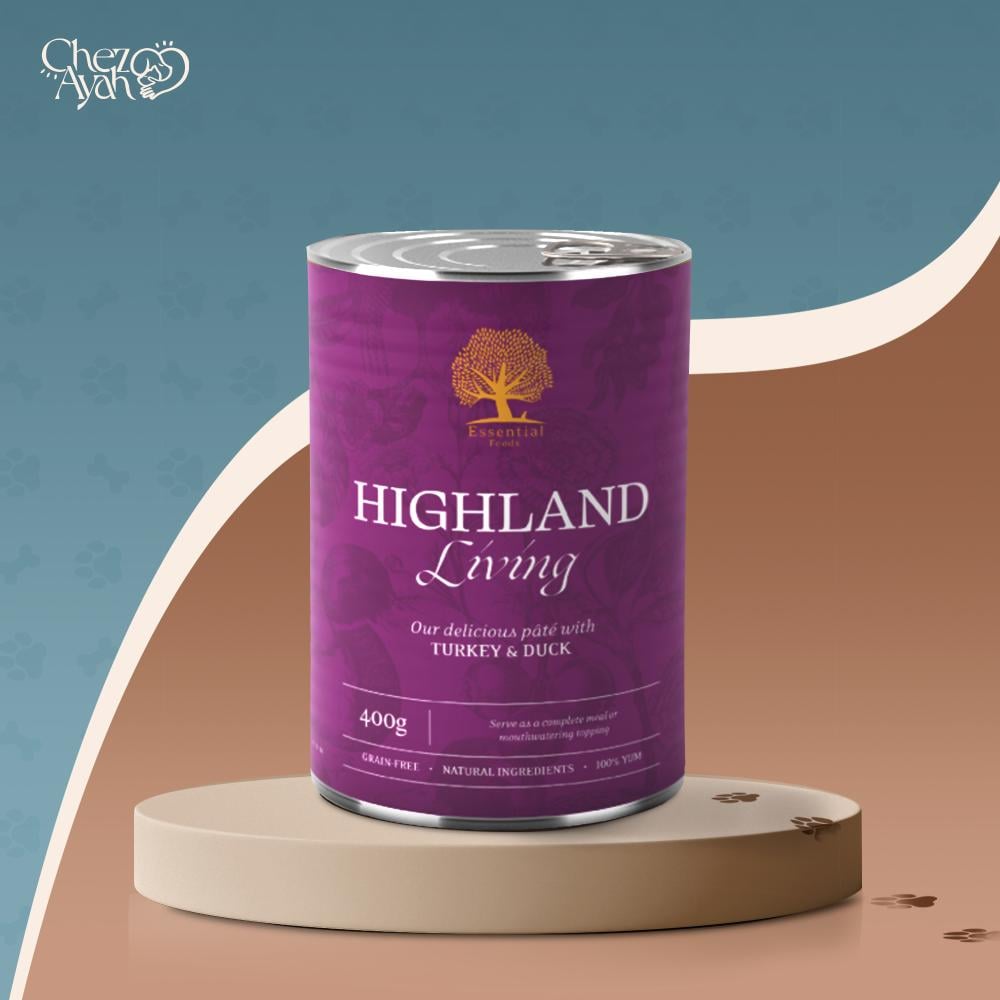 إيسينشال هايلاند ليفينغ باتيه هو وجبة فاخرة خالية من الحبوب مصممة خصيصًا للكلاب البالغة التي تعشق النكهات الطبيعية الغنية. يحتوي على 65% من الديك الرومي والبط، مما يوفر بروتينات عالية الجودة وعناصر غذائية أساسية. غني بالسوبرفودز مثل توت الغوجي والسبيرولينا لدعم الصحة العامة مع مذاق شهي لا يُقاوم. يمكن تقديمه كوجبة متكاملة أو كإضافة شهية لطعام الكلاب الجاف.